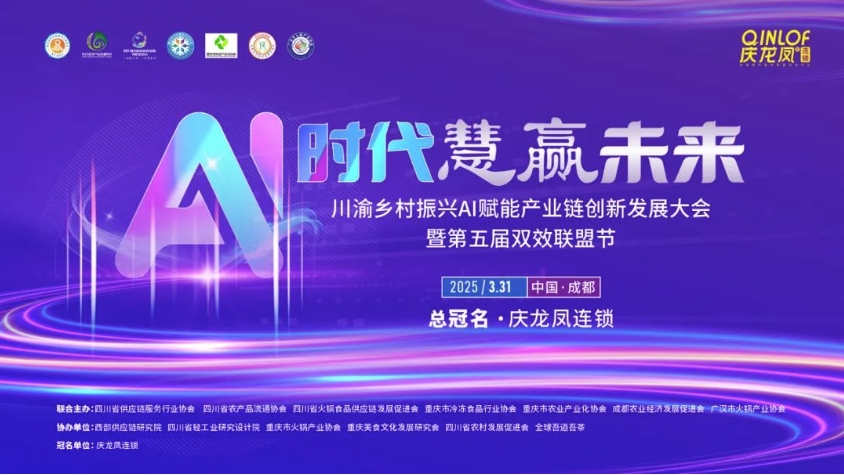 2025年3月31日,“AI時代 慧贏未來”川渝鄉(xiāng)村振興AI賦能產(chǎn)業(yè)鏈創(chuàng)新發(fā)展大會暨第五屆雙效聯(lián)盟節(jié)在成都市溫江區(qū)皇冠假日酒店盛大舉行,本次會議由四川省供應(yīng)鏈服務(wù)行業(yè)協(xié)會、四川省農(nóng)產(chǎn)品流通協(xié)會、四川省火鍋食品供應(yīng)鏈發(fā)展促進(jìn)會、重慶市冷凍食品行業(yè)協(xié)會、重慶市農(nóng)業(yè)產(chǎn)業(yè)化協(xié)會、成都農(nóng)業(yè)經(jīng)濟(jì)發(fā)展促進(jìn)會、廣漢市火鍋產(chǎn)業(yè)協(xié)會聯(lián)合主辦;西部供應(yīng)鏈研究院、四川省輕工業(yè)研究設(shè)計(jì)院、重慶市火鍋產(chǎn)業(yè)協(xié)會、重慶美食文化發(fā)展研究會、四川省農(nóng)村發(fā)展促進(jìn)會、全球吾道吾茶協(xié)辦;慶龍鳳連鎖總冠名
